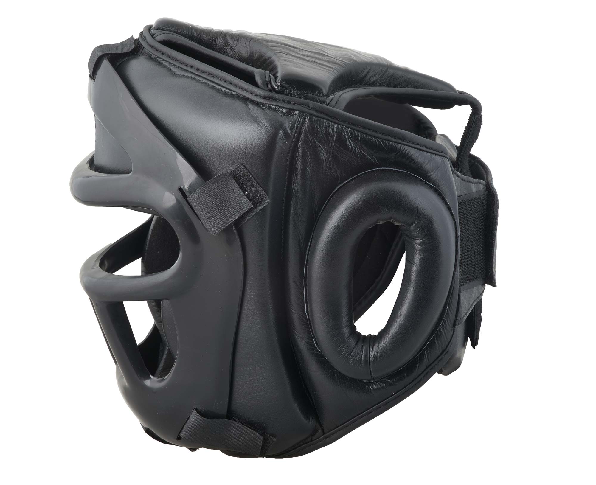 Kopfschutz (Rindsleder) mit Maske aus Kunststoff, optimal für Training mit Stumpfen Waffen, etc., nicht zum Vollkontaktsport geeignet, wo direkt auf die Maske geschlagen wird!